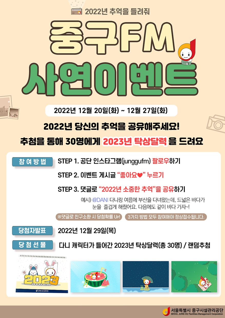 "추억 공유하고, 달력받자" 중구FM사연이벤트