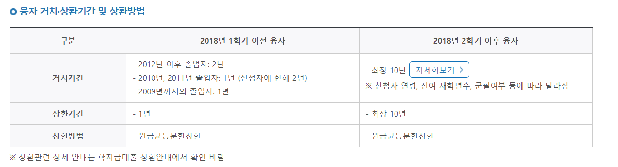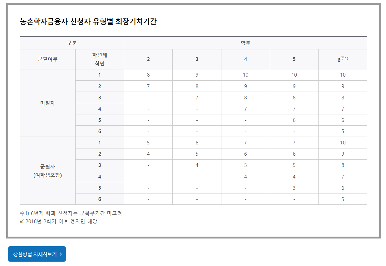 농촌출신대학생 학자금 융자 거치 상환기간 안내