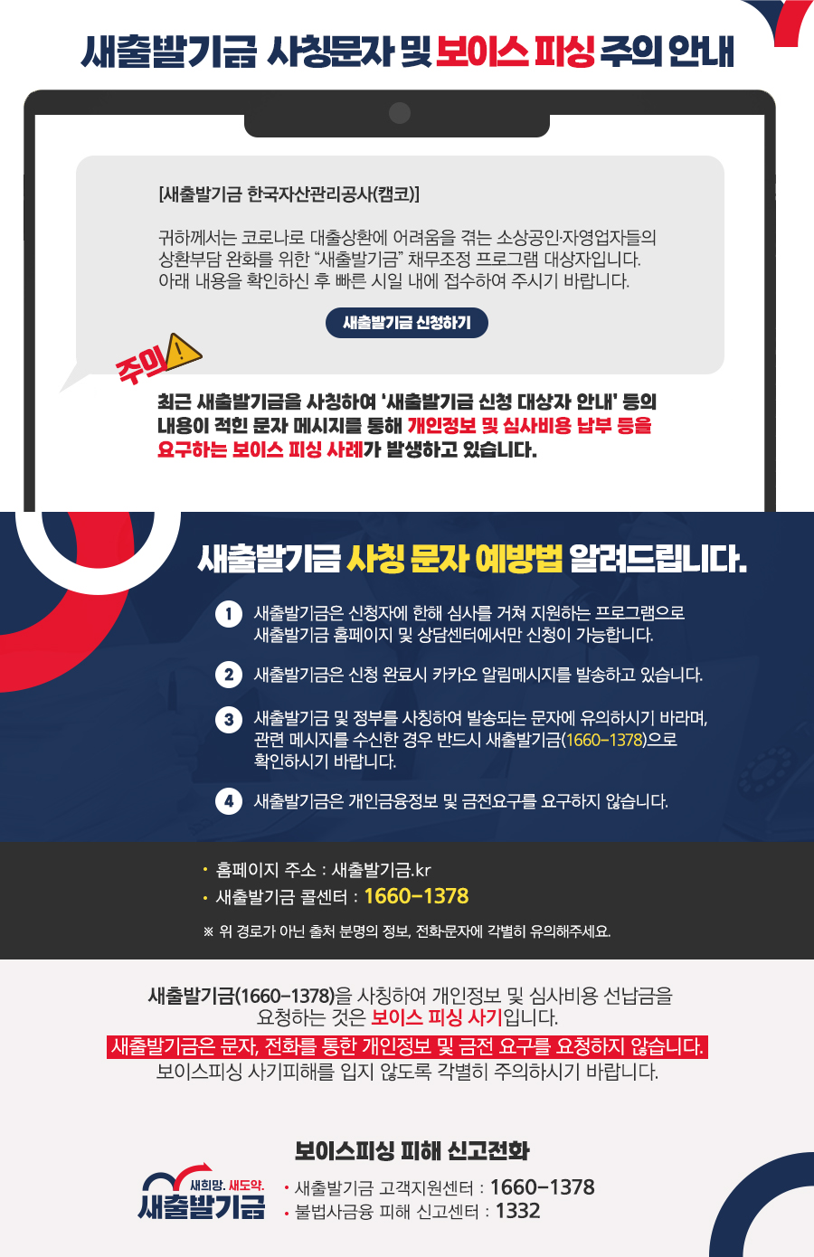 새출발기금 사칭문자 및 보이스 피싱 주의 안내