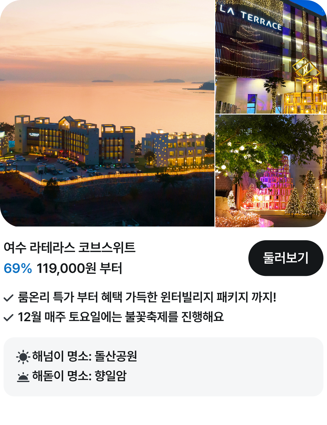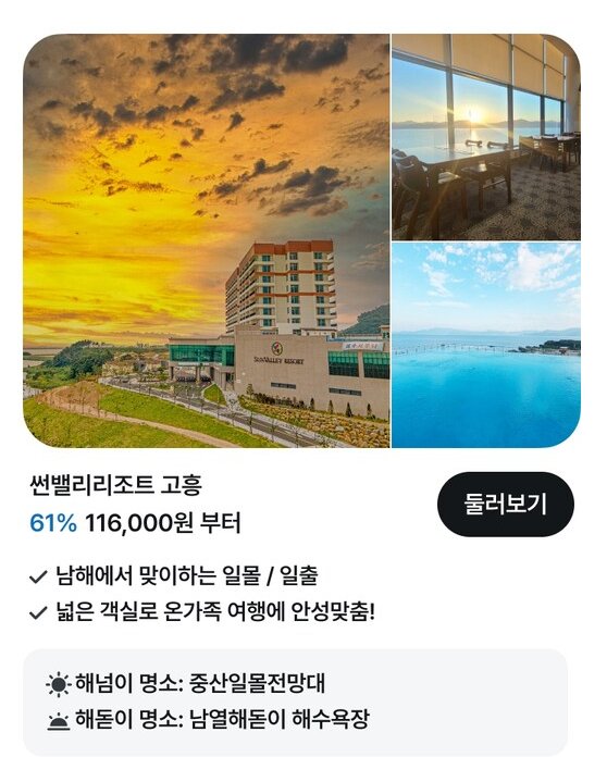 해돋이를 볼 수 있는 겨울바다 호텔 특별전!