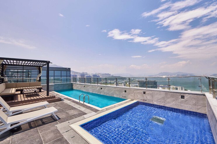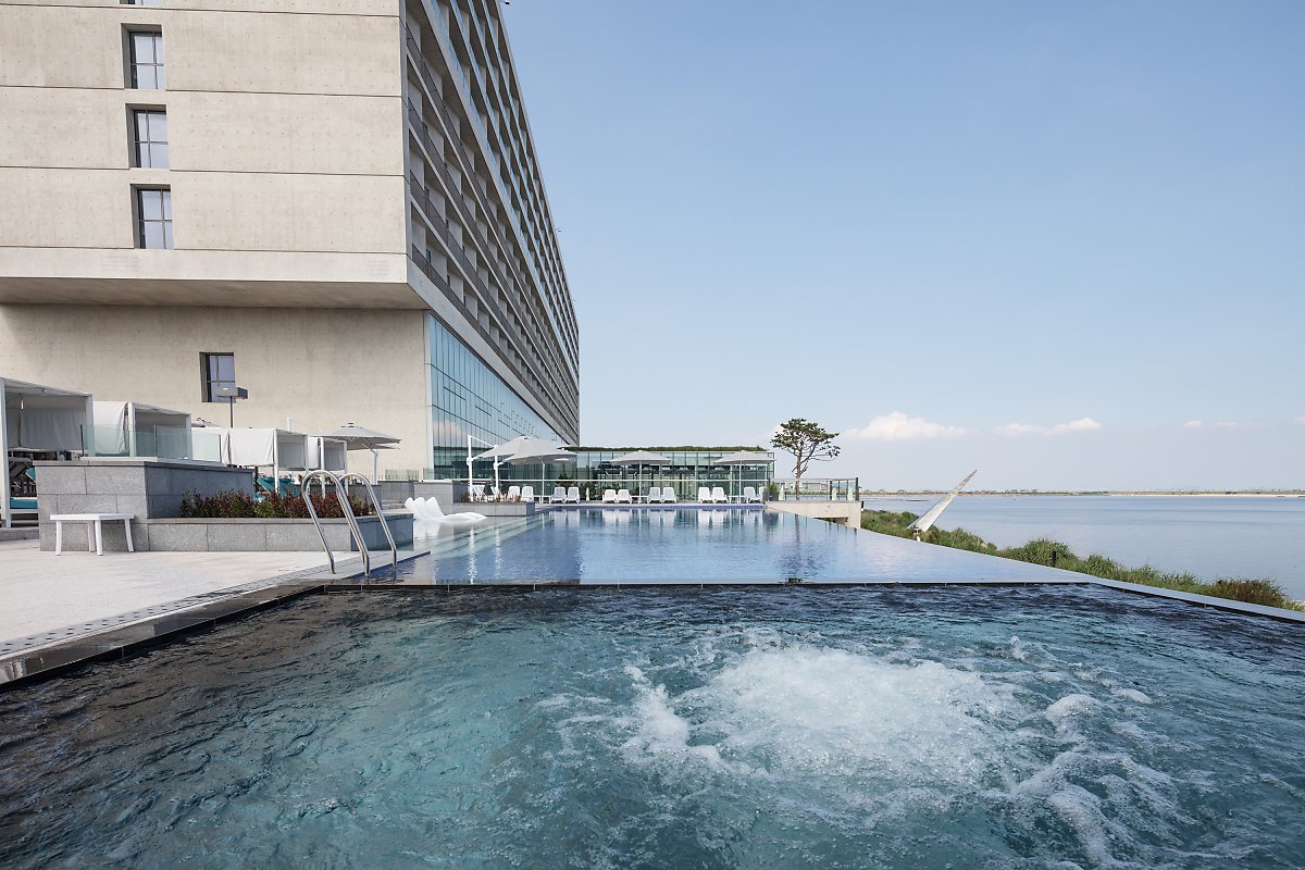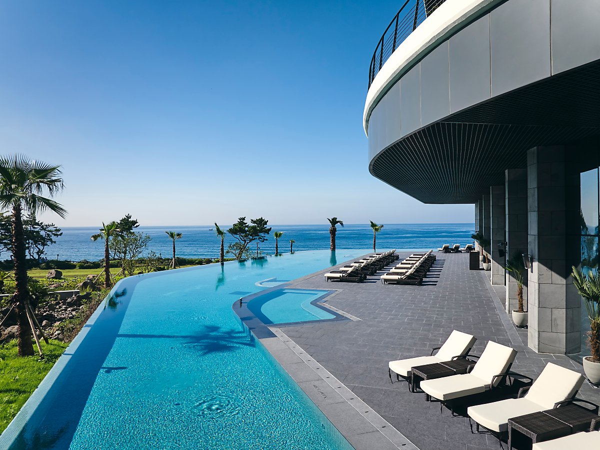 바다를 바라보며 수영을 즐길 수 있는 수영장,