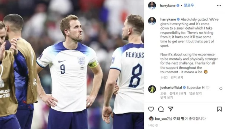 12시간이 지나 케인은 SNS에 자신이 프랑스 전 직후 먼 곳을 쳐다보는 사진과 함께 심정을 나타냈고 월드컵 여정을 마친 뒤 국내에서 휴식을 취하고 있는 손흥민이 같은 케인의 글의 좋아요를