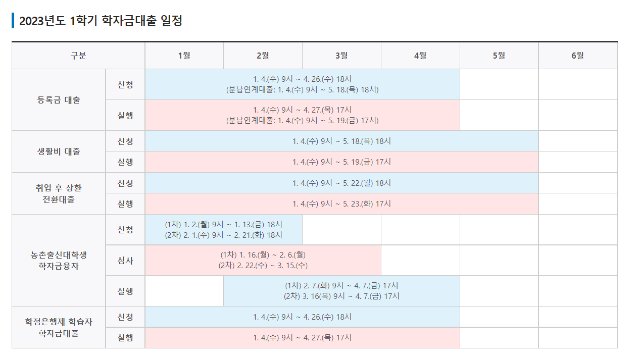 - 실행가능시간 : 9시 ~ 17시 (단, 등록금대출, 학점은행제 학습자 학자금대출은 대학(기관) 및 은행별 수납마감기간/시간 내 실행 필수)